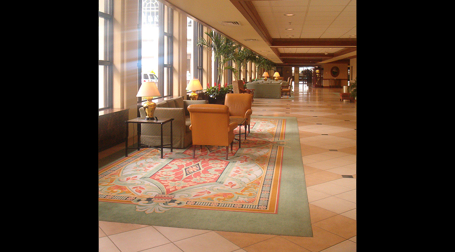Louisville's 1300-room riverfront hotel's overhaul began in 2003. The first phase included the main hotel lobby, over 600 guest suites, the Grand Ballroom, meeting rooms, public spaces and fitness center. The second phase turned a former mundane, metal-roofed pedway into a conservatory housing a new hotel bar with lounge seating areas, a grab-and-go coffee and deli, and sundry shop. The final phase of the project updated the west tower standard guestrooms, main kitchen, 14,000+ square feet junior ballroom, three restaurants, and lounges.